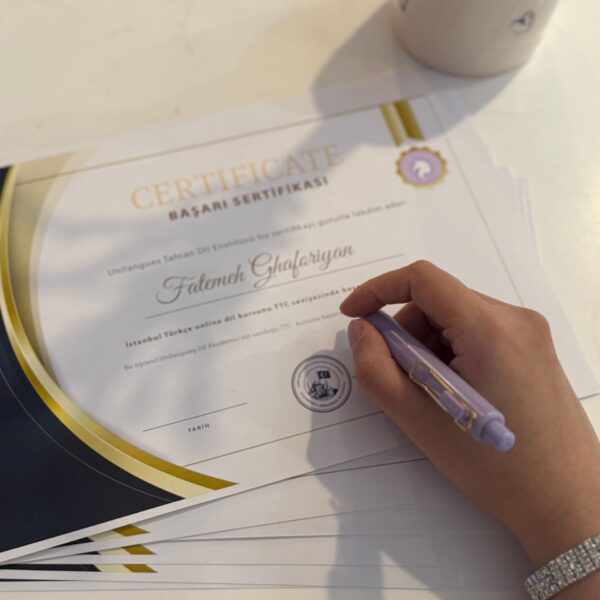 دارندهی مدرک بینالمللی TÖMER و DİLMER از دانشگاه آیدین استانبول و فارغالتحصیل در رشتهی آموزش زبان ترکی.